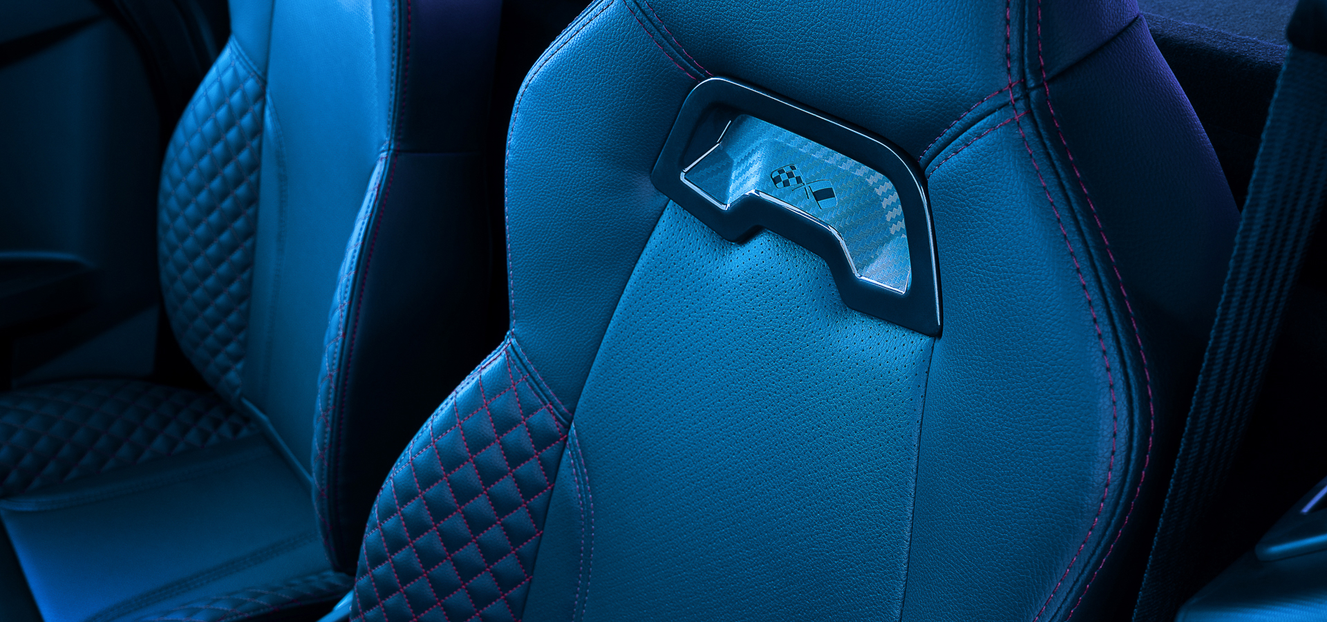 • Sièges Ultimate simili cuir surpiqûres rouges appui-tête grain carbone et logo Ligier